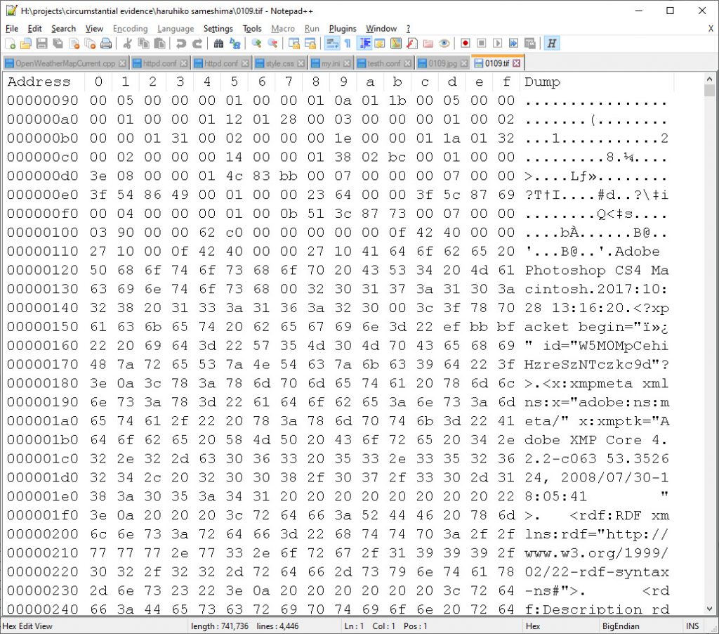 The digital back-story of an image might be of interest to a historian, biographer, a future climate scientist researching tidal heights (if the capture date is also available to them too). The images show rock forms and vegetation, tree cover, of use to geologists or biologists of the future. They might also tell a story about photography – the angle of view can be computed, the tonal range, shutter speeds (not recorded by a vintage 8×10 camera but analysed by looking at blur detail) the quirky nature of that particular scanner driver software and Photoshop’s compression algorithm in 2017.